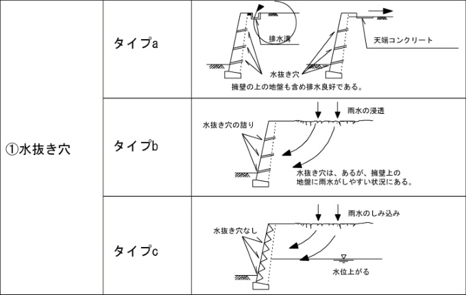 ①水抜き穴(空積みの場合は対象外とする)